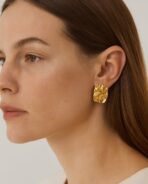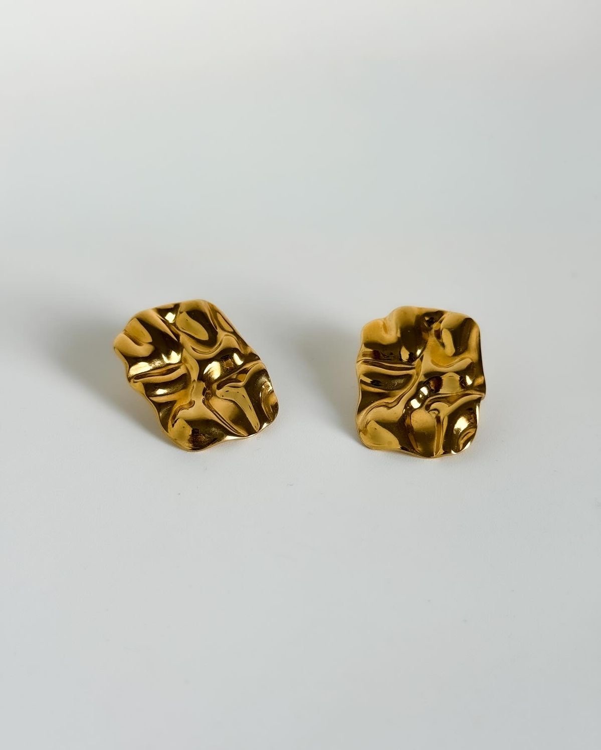 • Sculpted crushed-metal textured earrings with a premium 18K gold shine.