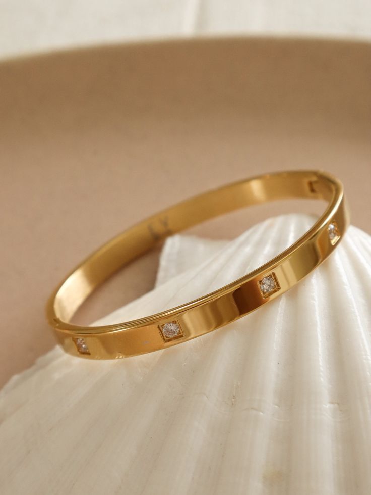 - Elegant gold bangle with a sleek, modern design