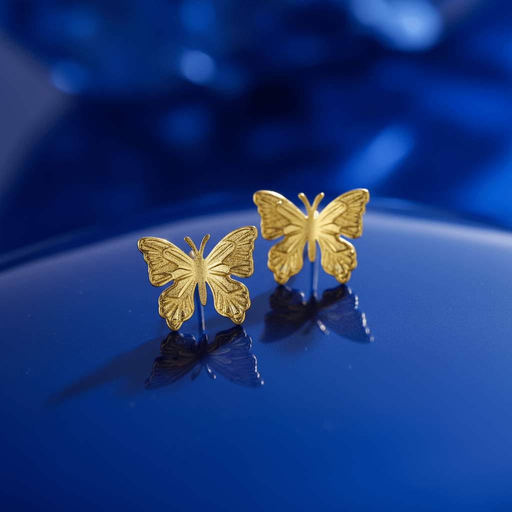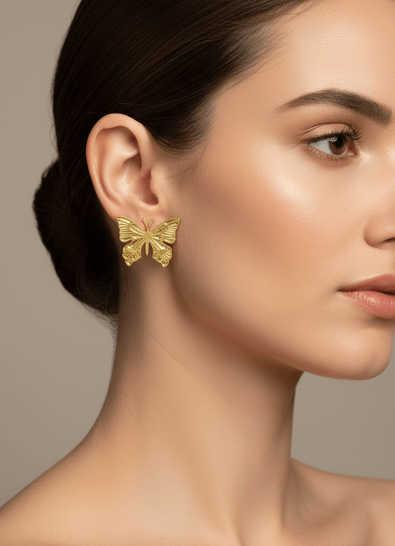 • Elegant butterfly-shaped studs with a detailed, high-shine gold-plated finish