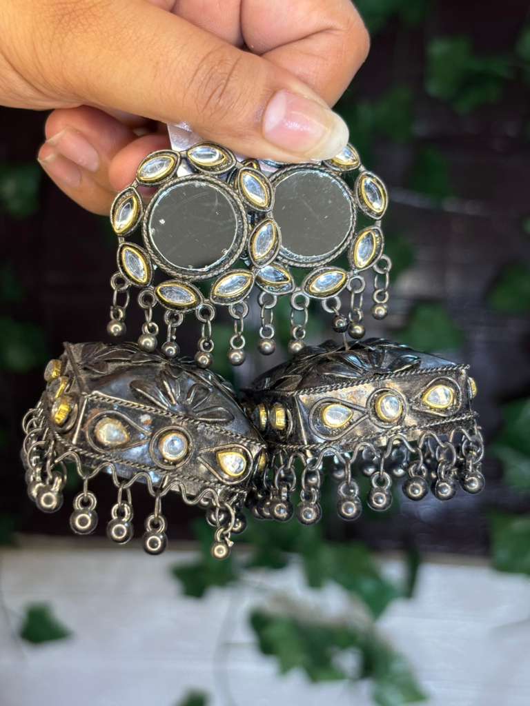 Be the first to review “Silver Mirror Chandbali Jhumkas” Cancel reply